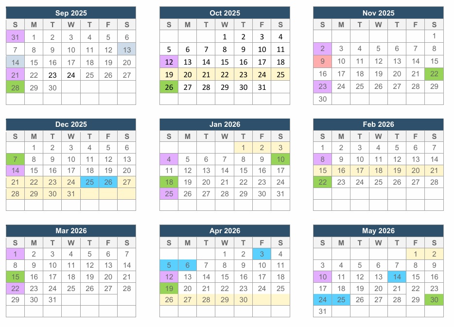 Voor de precieze data neem contact op de scriba (secretaris) van de gemeente.